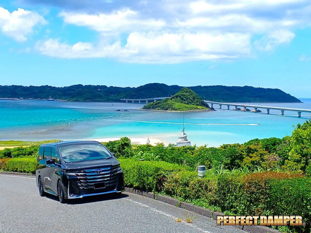 開発中のパーフェクトダンパーを装着した新型40系ヴェルファイアハイブリッド エグゼクティブランジE-four! 自動車のCM撮影でよく使われている山口県の角島(つのしま... -