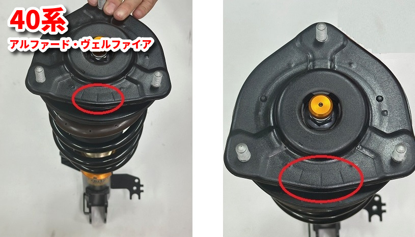 40系アルファード・ヴェルファイアはフロントアッパーマウントの向きに指定があります。