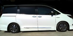 30アルファードS-Cパッケージ4WDに装着。ダウン量は標準設定の5cmダウンで出荷いただき、フロントとのバランスを考慮しリヤを+0.7mmダウンしました。